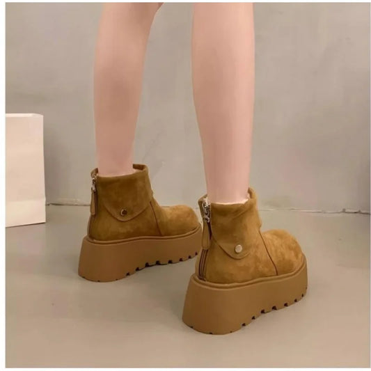 Brown Shoes for Women Black Round Toe Chunky Sock Suede Womens Snow Boots Platform Boot Female Gothic Sale Chic and Elegant Hot
