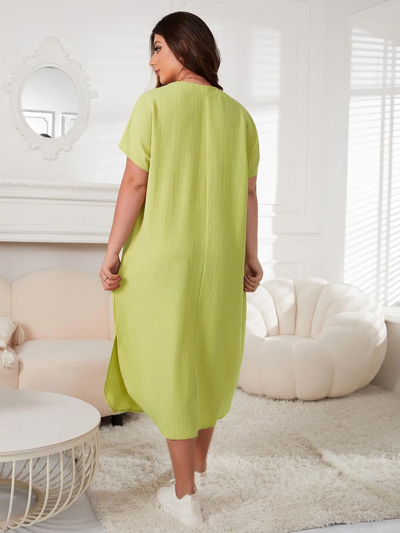 Plus Size Cut Out V Neck Women Nightgown Short Sleeves Solid Female 2 Piece Sleepwear Side Split Nightwear Homewear Clothes