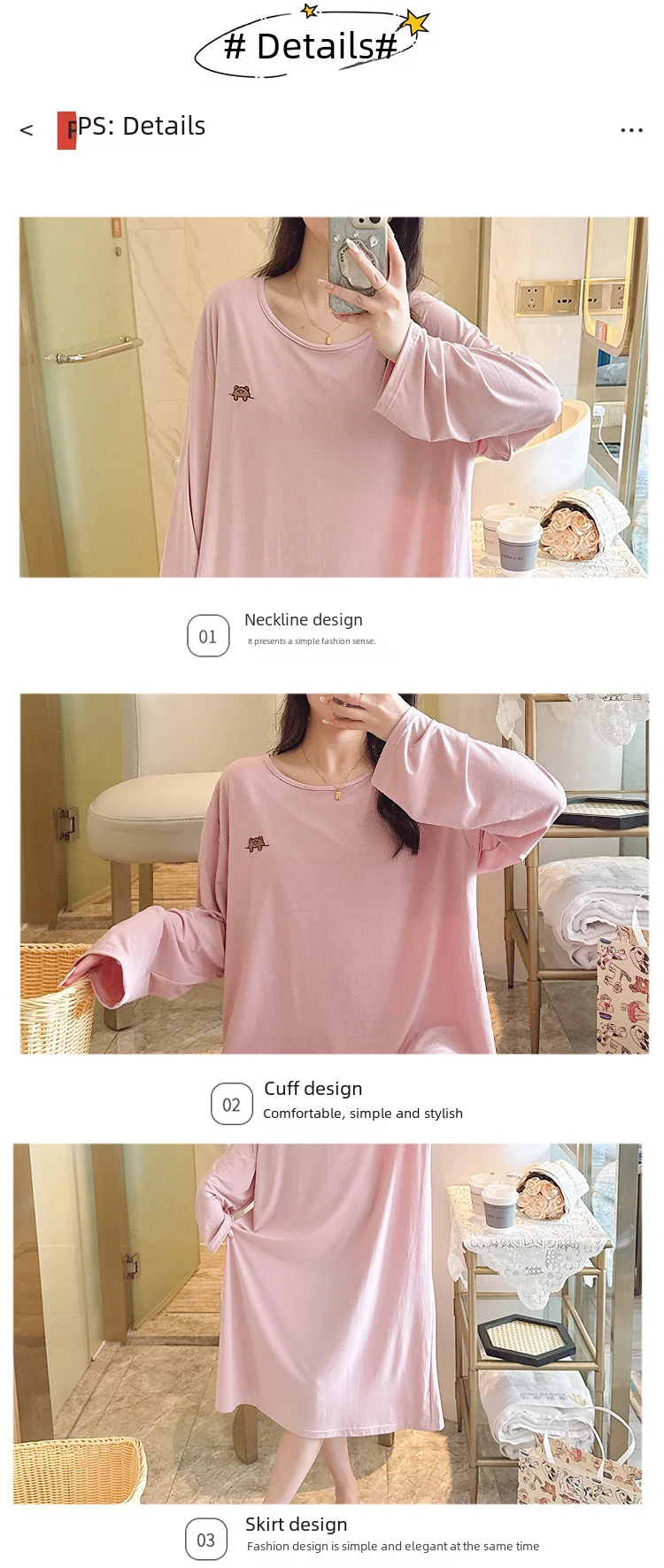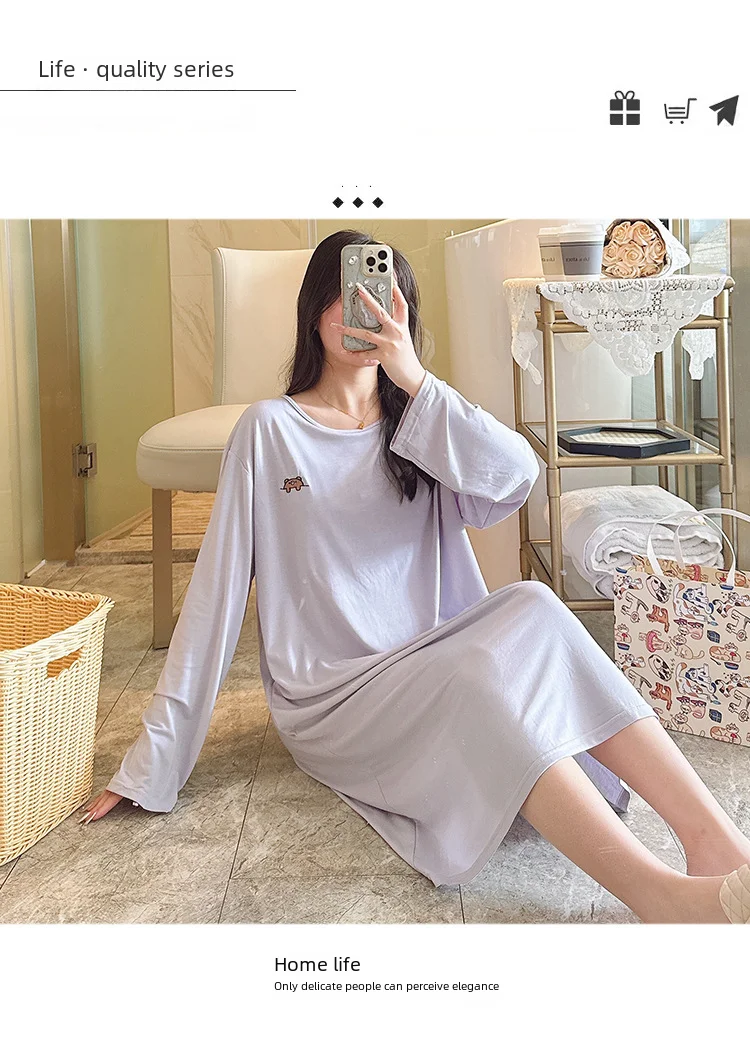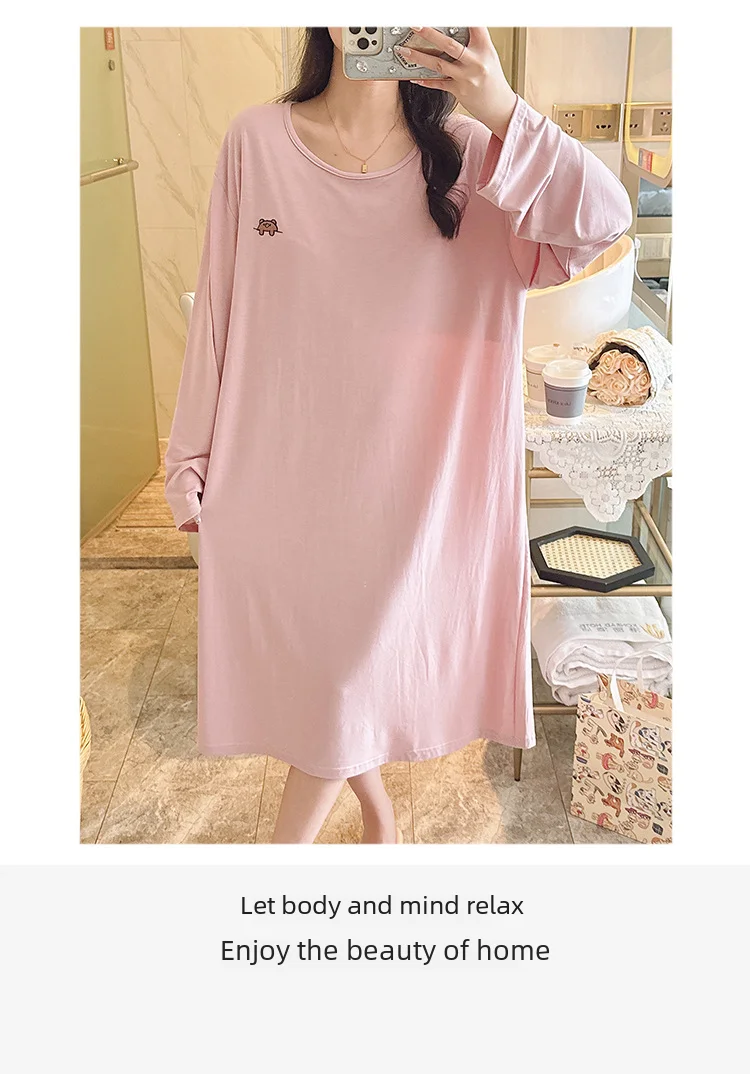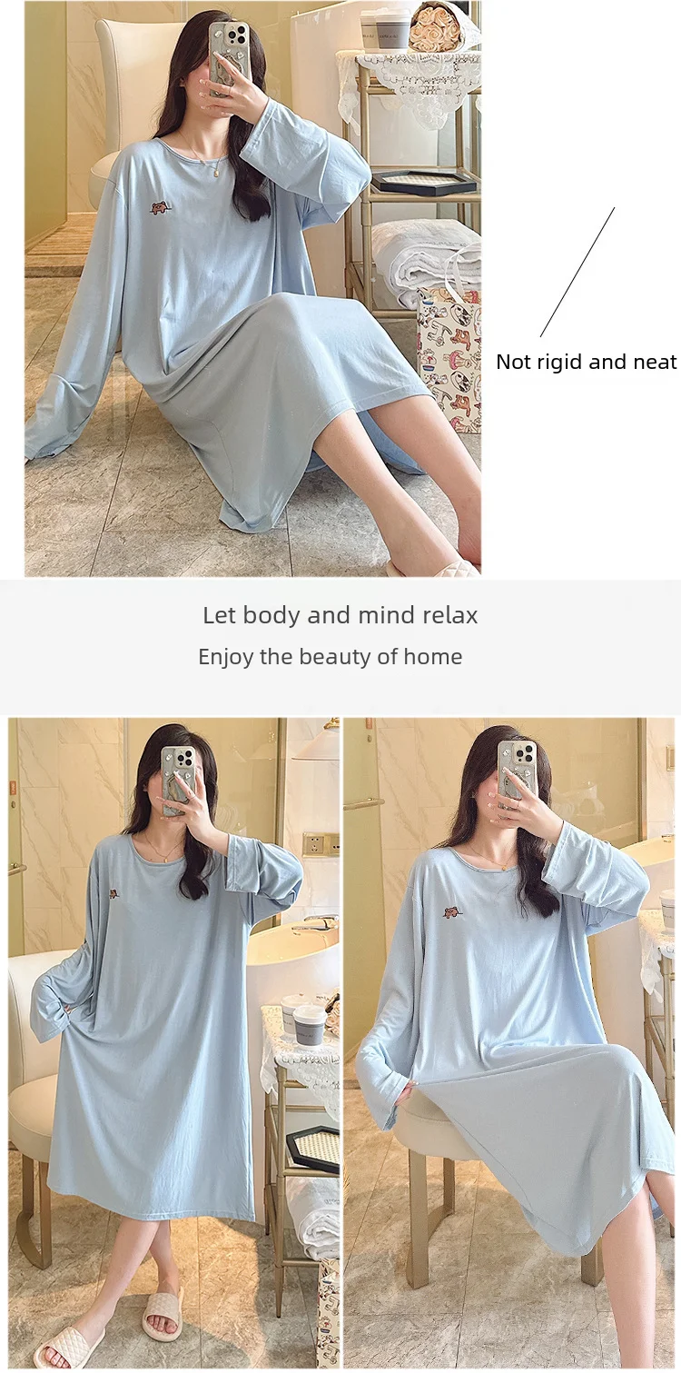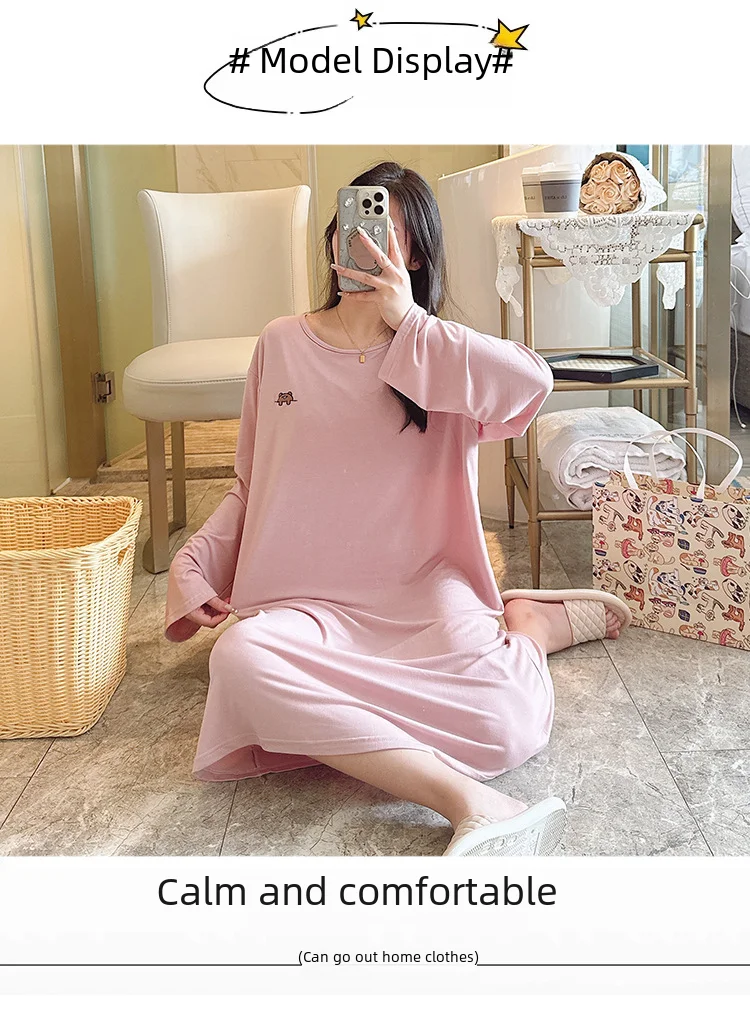 • Modal Material :Crafted from high-quality modal fabric, this nightgown offers a soft and comfortable feel, perfect for a good night's sleep.