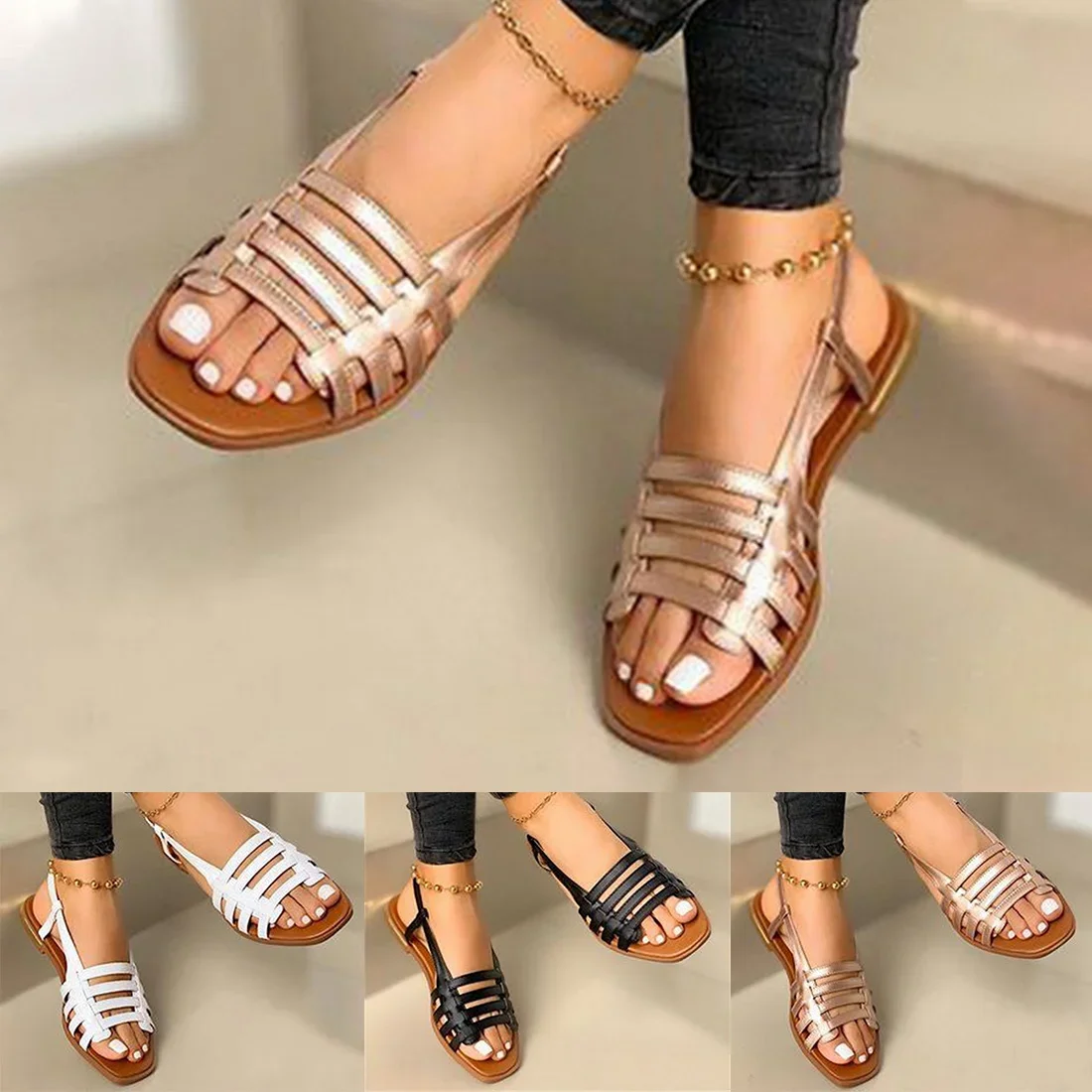 Women Sandals Woman Summer Hollow Out Roman Shoes 2024 Women's Gladiator Open Toe Beach Flats Ladies Footwear Plus Size 35-43